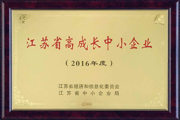 - 公司先后被評為國家高新技術企業、AAA級重合同守信用企業、江蘇省高成長型企業、江蘇省認定企業技術中心、江蘇省研究生工作站等